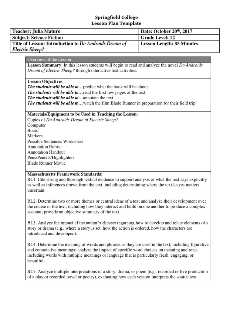 Do Androids Dream Of Electric Sheep Unit Plan Lesson Plan