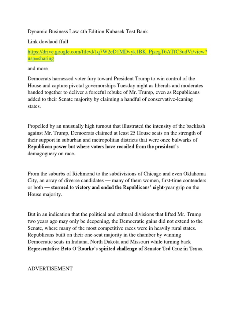 Dynamic Business Law 4th Edition Kubasek Test Bank Republican